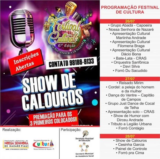 Alunos e idosos do Serviço de Convivência a Fortalecimento de Vínculos (SCFV) deram um show na abertura do VI Festival de Cultura de Nossa Senhora de Nazaré, aberto oficialmente ontem a noite na Praça Antonio Alves.