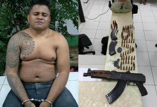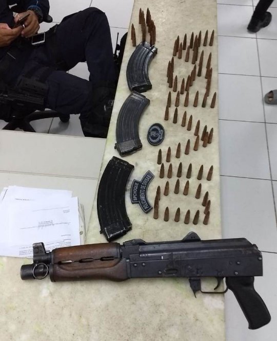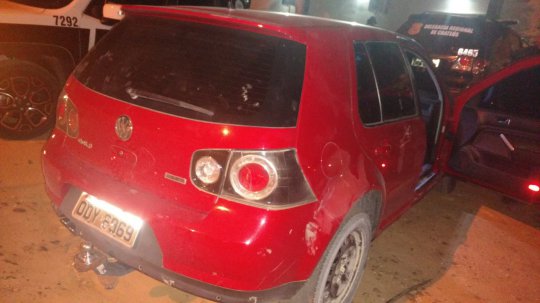 Por volta das 20hs policiais do Patrulhamento na divisa Ceará com Piauí tentaram parar um veiculo modelo Golf, placa ODY-6969 Teresina-PI. O motorista não parou e houve perseguição. O carro foi abandonado e no veiculo os policiais encontraram um fuzil ak-47 e muita munição, além de roupas.