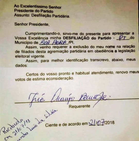 O ex-prefeito de Boa Hora Zé Resende pediu a desfiliação do partido dos Trabalhadores e anunciou que não votará mais no atual govenador Wellington Dias. Resende disse ao Em Foco que o motivo é ter sido barrado no Karnak durante o período em que foi prefeito de Boa Hora.