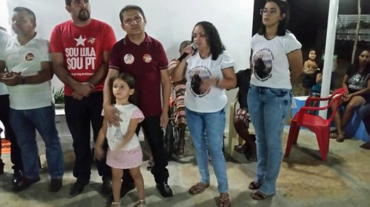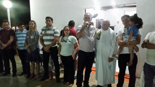 A comunidade está em festejos, após a entrega das ações houve novena e em seguida a parte social.