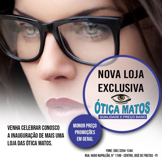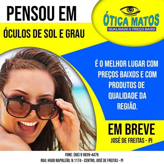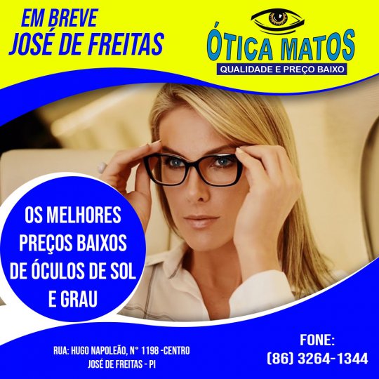 A cidade de José de Freitas vai receber uma filial da Ótica Matos. Já presente em Campo Maior, Altos e Piripiri, a empresa chega a José de Freitas com o diferencial na oferta de serviço e facilidade em preço a forma de pagamentos.