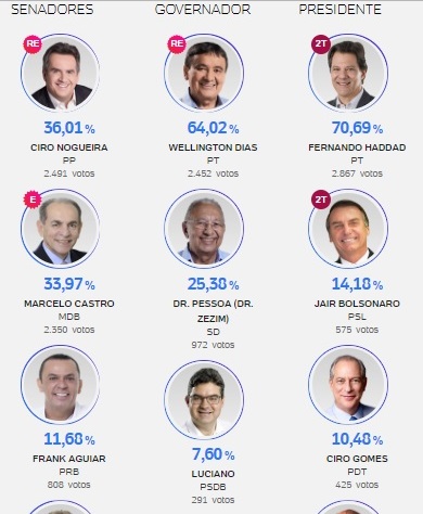 Com 100% das urnas apuradas em Juazeiro do Piauí, o candidato a deputado estadual Antonio Félix atingiu a maior votação no município com 801 votos, seguido do candidato Paulo Martins com 594 e Fábio Novo com 518. Logo em seguida aparece Wilson Brandão com 467 e Lucy com 407.