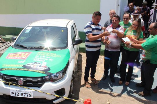 Como a ganhadora do carro está em São Paulo, a chave do veículo foi entregue ao seu irmão, Carlão Acre.