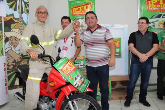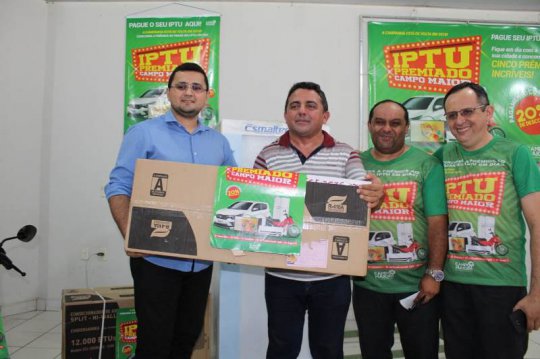 A Prefeitura Municipal de Campo Maior realizou nesta segunda-feira (29/10) o sorteio da segunda edição da campanha IPTU Premiado. Os contribuintes campo-maiorenses concorreram a cinco prêmios: um carro Mobi 0km com tanque cheio e emplacado, uma moto Honda Pop, uma geladeira, um ar condicionado e uma TV 32 polegadas.