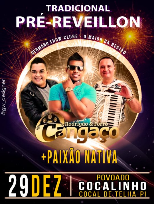 O evento acontece dia 29 de dezembro, um sábado, no Povoado Cocalinho em Cocal de Telha-PI. Além do Forró Cangaço, a Banda Paixão Nativa também será atração.