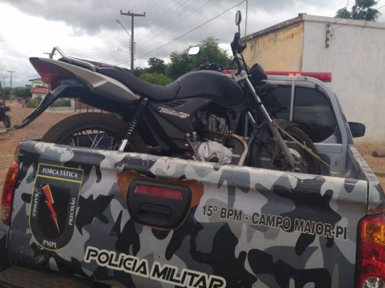 Ação ofensiva e preventiva do 15° BPM na zona rural de Cocal de Telha, na manhã deste sábado (12), resultou na apreensão de uma motocicleta roubada, modelo Titan KS, cor preta, placa NIF-2266, que estava com placa clonada. Foram apreendidos ainda um simulacro de arma de fogo, um celular produto de furto, porção de crack e maconha, material para embalar droga, além de várias aves ameaçadas de extinção, que estavam presas em gaiolas.