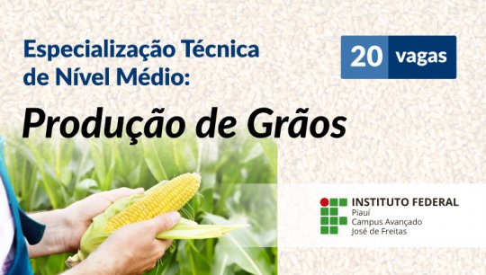 O Instituto Federal do Piauí (IFPI) divulgou nessa segunda-feira, 14, edital para Especialização Técnica de Nível Médio em Produção de Grãos. Com 20 vagas, o curso será oferecido pelo Campus Avançado José de Freitas, na modalidade presencial.