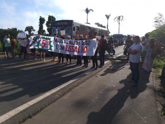 A empresa C. Santos saiu dessa linha porque não oferecia um bom serviço. Ônibus lotados e mal conservados e passagens caras. A nova empresa continuou com a mesma deficiência nos serviços e agora que a gasolina está é baixando, ela vem com aumento?”, questionou um dos populares no protesto.