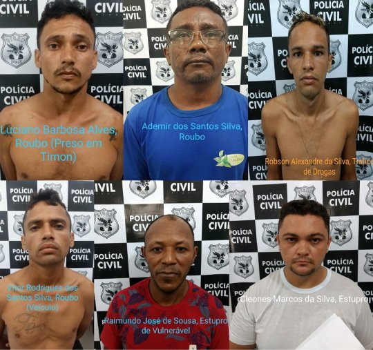 Foram detidos ainda Luciano Barbosa Alves, este preso em Timon por roubo, Raimundo José de Sousa, por estupro de vulnerável, Robson Alexandre da Silva, por tráfico de drogas e Vitor Rodrigues dos Santos Silvas, por roubo de veículos.