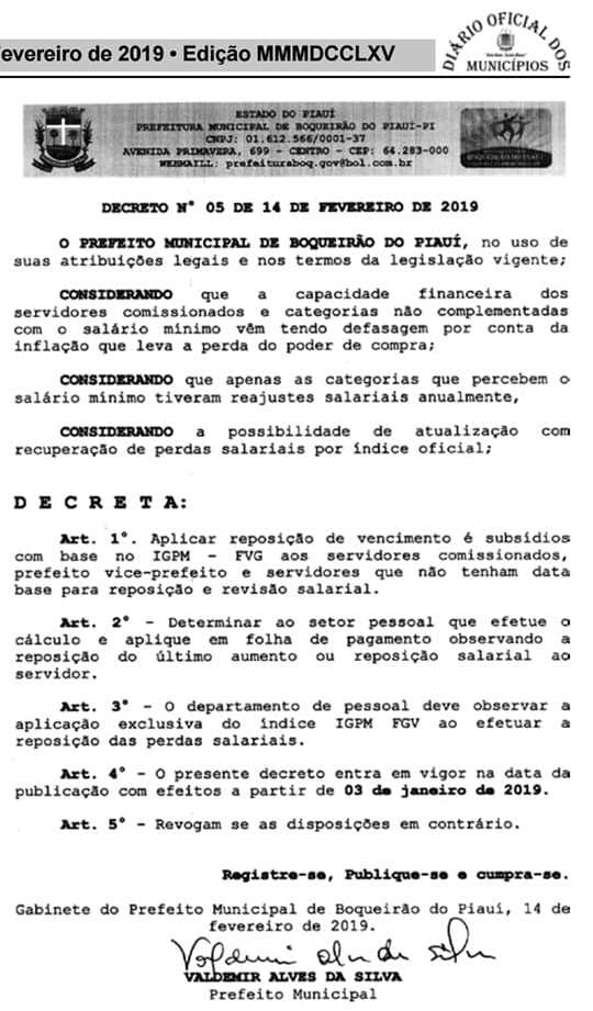 Em Boqueirão do Piauí, município a 126 km ao norte de Teresina, o prefeito Valdemir Alves da Silva, o Solteiro (PT), aumentou o próprio salário, do vice-prefeito e dos cargos comissionados, como secretários, por exemplos. O aumento foi feito por decreto, sem a aprovação da câmara de vereadores.