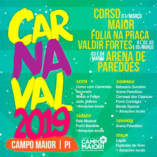 Nesta sexta (01|03), Campo Maior será invadida pelas cores e ritmos carnavalescos com a realização do 7° Corso Maior. O evento abrirá a programação do Carnaval de Campo Maior, na qual contará com uma premiação de 5.000 reais.