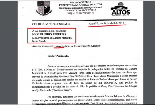 “Muitos pais as vezes não tem sequer dinheiro pra comprar o alimento dos filhos, quanto mais R$ 56 reais para comprar o fardamento escolar. O correto seria a prefeitura doar a farda, porque existe dinheiro suficiente para isso porque a identificação dos alunos é necessária”, comentou Maxwell ao receber o documento. Ele reforça a necessidade do povo procurar a Câmara para reivindicar seus direitos. “Nós estamos aqui para ser a voz do povo e fiscalizar o poder executivo. Estamos de portas abertas para receber todos os altoenses e juntos lutar pelos seus direitos”, concluiu.