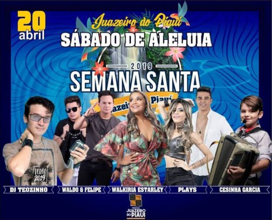 A prefeitura de Juazeiro do Piauí que tem a frente o prefeito Zé Valdo, divulgou a programação do Sábado de Aleluia, para o município este ano no Balneária Pimenta. Haverá passeio de ciclismo, cicloturismo, festival de música e shows com a banda Forró dos Plays, Cesinha Garcia, Dj Teozinho e Walkiria Estarley no balneário Pimenta.