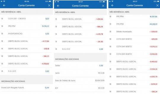Extratos da conta da prefeitura comprova os sequestros judiciais