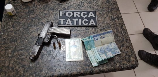 “A viatura foi até o local e visualizou o suspeito a pé indo em direção ao Centro. Foi realizada a abordagem e foi localizado dentro da mochila que o mesmo carregava uma arma de fogo caseira e duas munições calibre 38”, explicou.