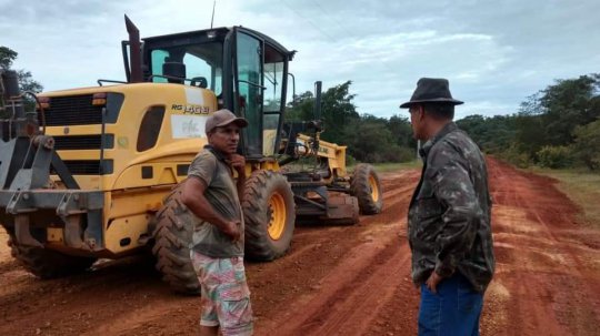 O prefeito Oscar Bandeira juntamente com o vereador Matueiro estiveram no dia de hoje acompanhando de perto o início dos trabalhos de recuperação da estrada do Bom Jardim.