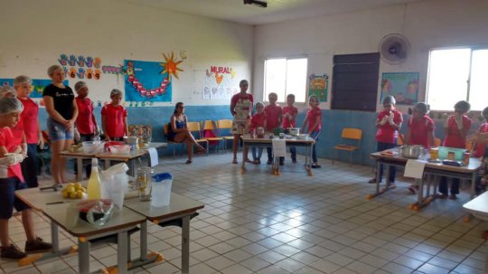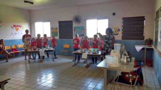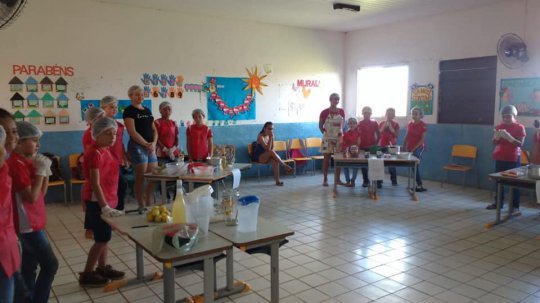 O coordenador fez o registro de uma aula diferente na turma do 4º com a professora Lucivana onde alunos e mães, juntos trabalharam a ciências com misturas, a matemática com medidas e o português com receitas e no final ainda degustaram o resultado de todo o aprendizado e experiência vividos na sala de aula.
