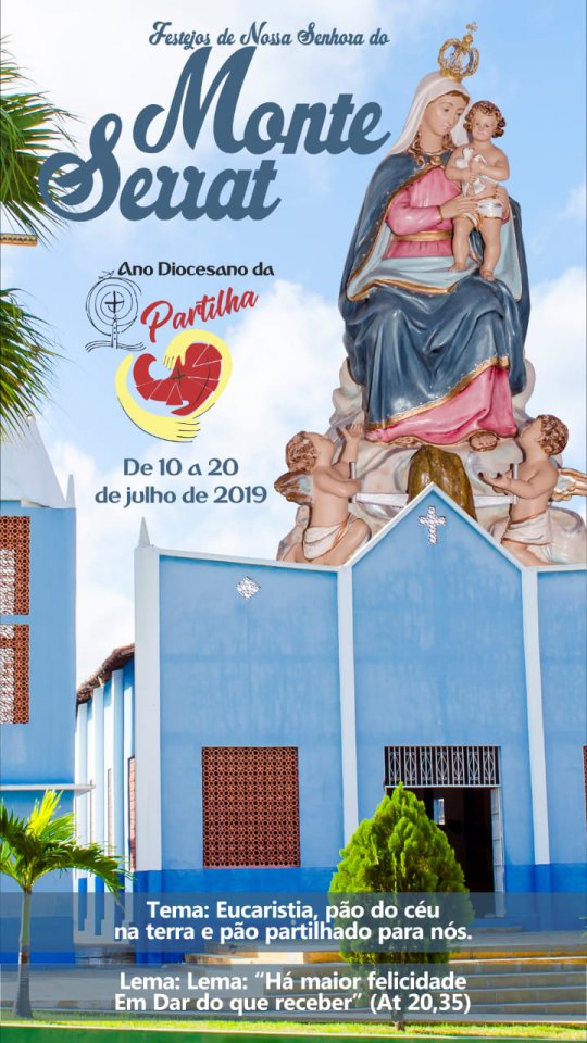 O festejo de Nossa Senhora do Monte Serrat se inicia hoje dia 10/07, e é com grande alegria e satisfação, que o pároco Pe Herbert Morais convida a todos a participar da festa da Excelsa padroeira do município de Buriti dos Montes.