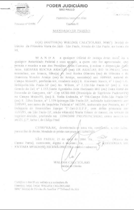 Policiais militares da GPM de Sigefredo Pacheco foram informado que o foragido estava sendo procurado pela Justiça de São Paulo, há 19 anos, por um assassinato contra Maria Vilanir de Barros na região de São Paulo. Após apura as informmações e receberem o mandado de prisão, os PMs sairam em diligência a capturaram do indivíduo.
