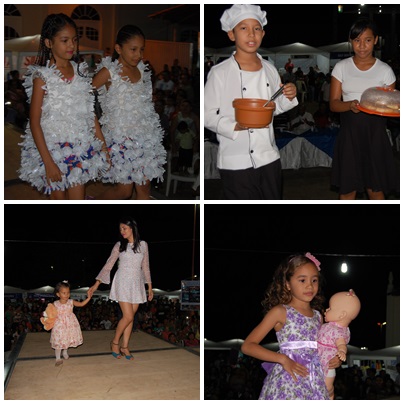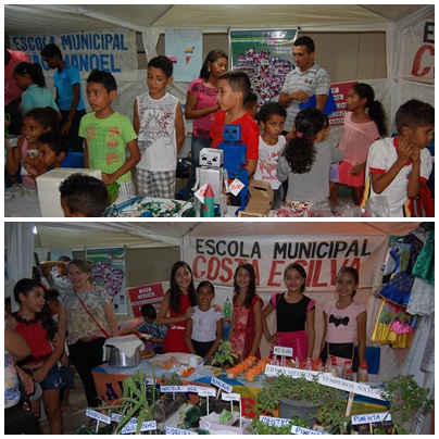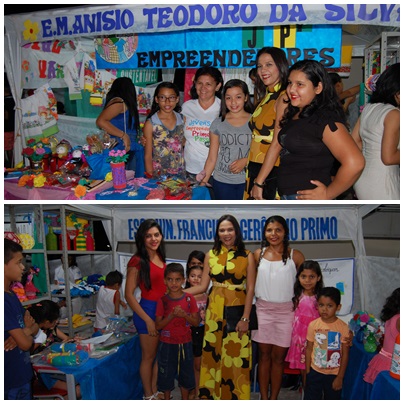 As escolas municipais expuseram em seus standes os produtos constru?dos durante a execu??o do Projeto Jovens Empreendedores Primeiros Passos. A Escola Municipal Costa e Silva foi a ?nica escola a participar do desfile fazendo demonstra??o de linhas de moda constru?dos com material de reciclagem como roupas feitas de jornais, copos descart?veis e colheres descart?veis e ainda levou a passarela o tem gastronomia.