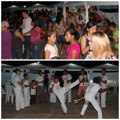A Feira do Empreendedor teve em sua abertura uma bel?ssima apresenta??o do grupo de dan?a local dando as boas vindas a todos os presentes. O grupo Fam?lia Capoeira realizou uma linda apresenta??o e a Banda Vertente, formada por jovens cocatelhenses, fez uma bel?ssimo show de rock levando o publico ao del?rio sendo uma das grandes atra??es da noite.