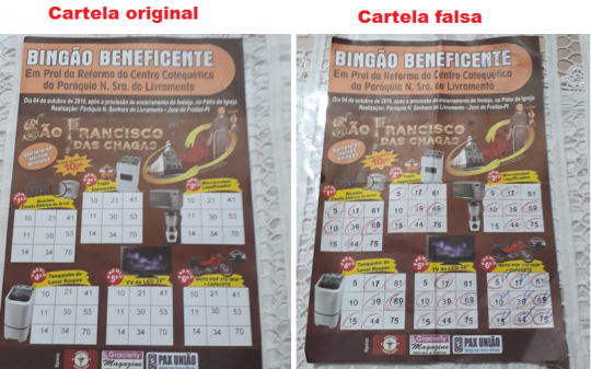 De acordo com o subtenente Borges, o padre Gilcimar recebeu informações de fiéis que haviam pessoas falsificando cartelas do Bingão Beneficente. Após o bingo, o padre Gilcimar marcou para entregar a moto na manhã de hoje (05/10) ao ganhador. De posse das cartelas vencedoras, Gilcimar constatou que as cartelas eram falsas. De imediato, acionou o subtenente Borges que efetuou a prisão da mulher acusada de falsificar as cartelas.