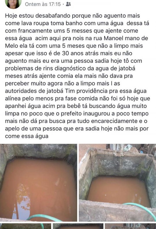 Nesta semana, o parlamentar já havia denunciado a péssima situação da qualidade da água que é fornecida na cidade de Jatobá do Piauí.