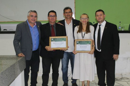 A Câmara Municipal de Vereadores de Campo Maior, durante sessão solene na noite desta quarta-feira (06/11), fez a entrega de mais dois títulos de cidadania campomaiorense. Desta vez, os homenageados foram a professora e sindicalista, Maria Bernadete Silva, e o professor e músico, Reginaldo Rodrigues de Macedo. As homenagens foram propostas pelos vereadores Hamilton Segundo e Daniel Soares, respectivamente.