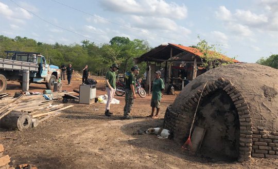 Os quatro fornos que haviam no local foram destruídos pelos policiais e o material apreendido.