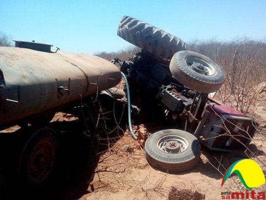 Um trator que transportava água pela Defesa Civil (operação pipa) para moradores do Assentamento São Francisco, localizado a 32 km da sede do município de São Miguel do Tapuio, tombou na última quarta-feira (22), após subir uma ladeira ainda bem próxima ao povoado.