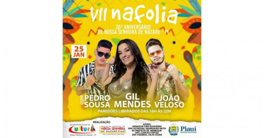 O VII NaFolia, que além de ser um carnaval fora de época, comemora o aniversário de Nossa Senhora de Nazaré, já está sendo organizado e a prefeitura já divulgou as atrações que irão animar a festa.