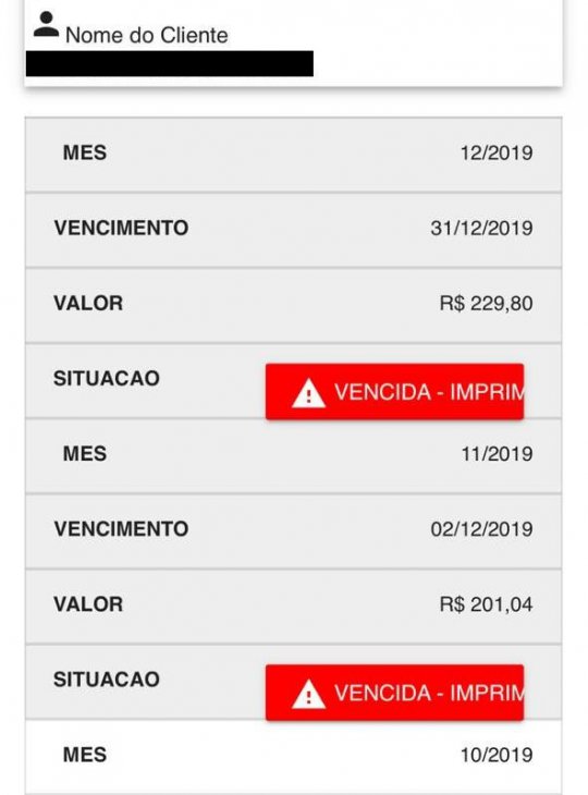 Foram empenhados dois boleto de R$ 201,04 e de R$ 229,80, respectivamente. Os dois boletos são referentes aos meses de novembro e dezembro de 2019 que o gestor havia deixado de pagar.
