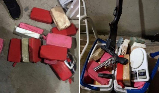 A Secretaria de Estado da Segurança Pública, através da DEPRE (Delegacia de Prevenção e Repressão a Entorpecentes), realizou uma operação na manhã desta quinta-feira (23/01) que resultou na prisão de três pessoas, apreensão de 34 tabletes de drogas, duas armas de fogo, quatro espingardas, balança de precisão, três veículos e uma moto.