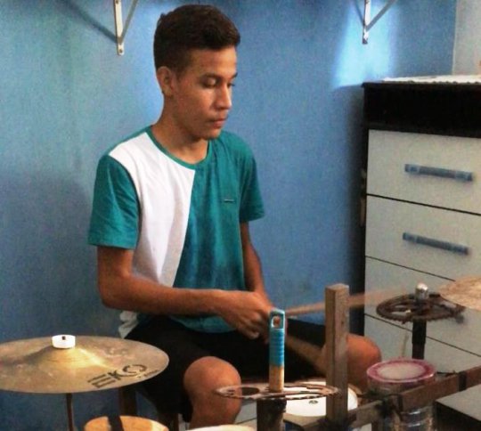 Sonhador, o adolescente diz que seu objetivo é ter uma bateria profissional, onde eu possa estudar e conseguir ótimos resultados através da profissão de músico.