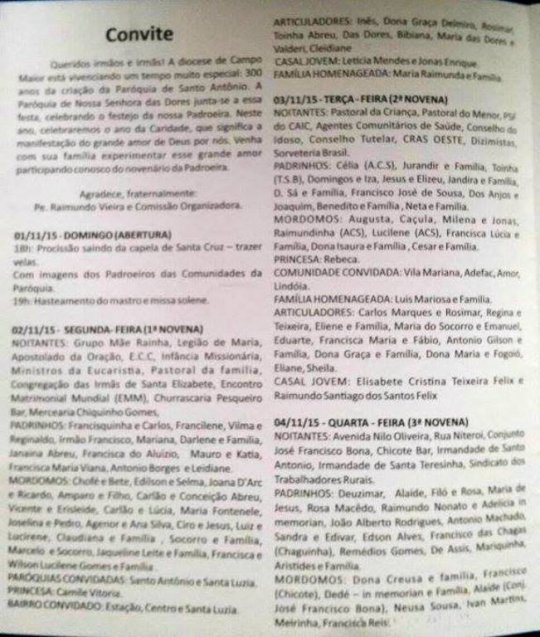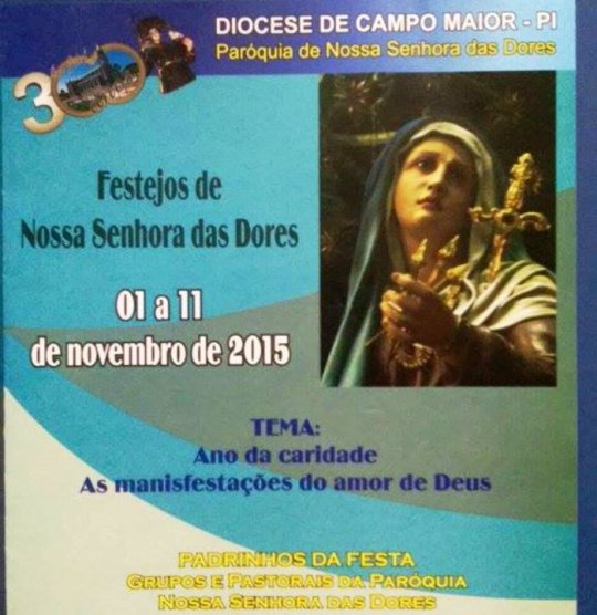De 01 a 11 de novembro será realizado pela Diocese de Campo Maior (PI) o Festejo de Nossa Senhora das Dores no Bairro Fripisa.
