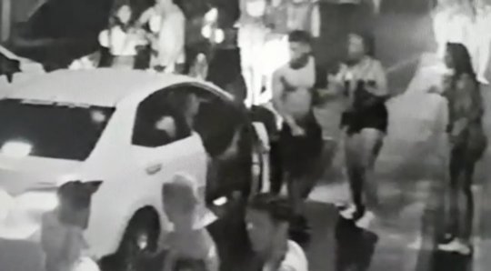 Nas imagens mostram a vítima caminhando na companhia de amigos, quando um carro branco se aproxima e um homem sai de dentro bastante exaltado, com um objeto na mão, o que se uma garrafa de vidro e agride o jovem.