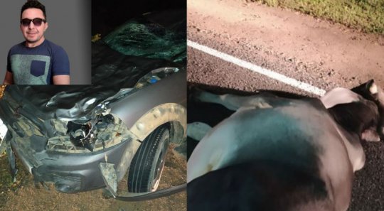 O carro ficou parcialmente destruído. Já os dois animais morreram ainda no local.