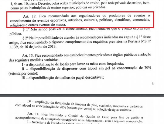 Abaixo, decreto 18.884 do governa do estado do dia 16 de março