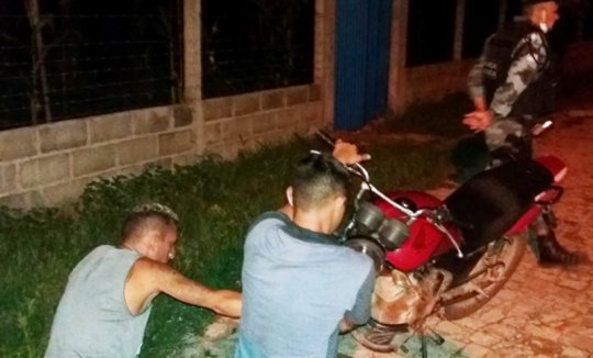 O sargento informou que a guarnição se deparou com os dois indivíduos trafegando em uma motocicleta em atitude suspeita. A dupla foi interceptada na Rua Sete Setembro, na altura do Bairro Suco de Uva, e durante uma revista foi encontrado uma replica de pistola de responsabilidade dos dois.