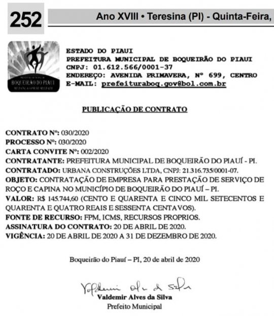 No caso especifico de Boqueirão do Piauí, cabe muito ao poder legislativo acompanhar, quando os serviços contratados tiverem sendo executados, quem são os trabalhadores? Qual vínculo eles tem com a empresa? Se estão recebendo direitos trabalhadores e outros direitos?