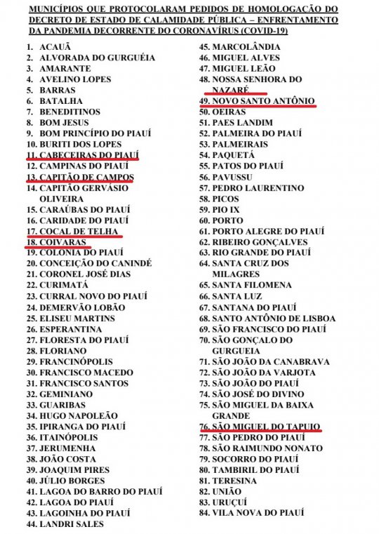Em reunião virtual conjunta, realizada na manhã desta quinta-feira (30/04), as comissões de Constituição e Justiça e de Fiscalização e Controle, Finanças e Tributação da Assembleia Legislativa analisaram e aprovaram o Projeto de Decreto Legislativo n° 12, de 15 de abril de 2020, que trata da decretação de calamidade pública em 84 municípios do Piauí por conta da pandemia da Convid-19.