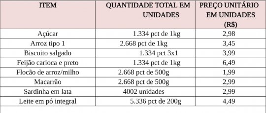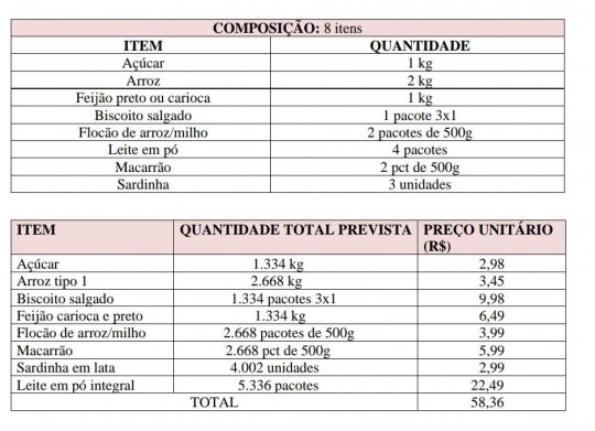 “Sim, não ficou claro na primeira tabela que mandamos para o ministério público e que divulgamos, mas no momento que apareceram dúvidas, encaminhamos as devidas explicações, e publicamos uma tabela do KIT com todo os produtos com peso e valor unitário para não gerar dúvida”, explicou o prefeito.