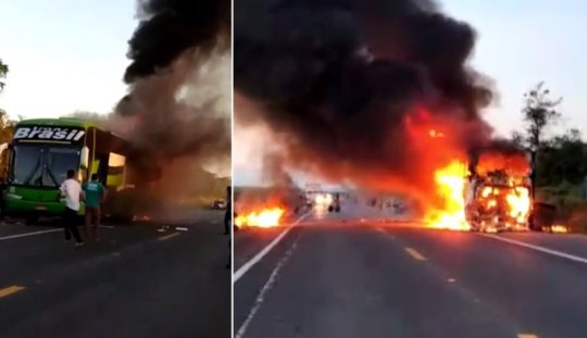 O motorista disse que ouviu apenas um papoco na parte de trás do veículo e já foi parando no acostamento e quando desceu já viu fogo na parte de trás. O fogo consumiu todo o veículo rapidamente, mas todos os passageiros conseguiram retirar as bagagens e ninguém ficou ferido.