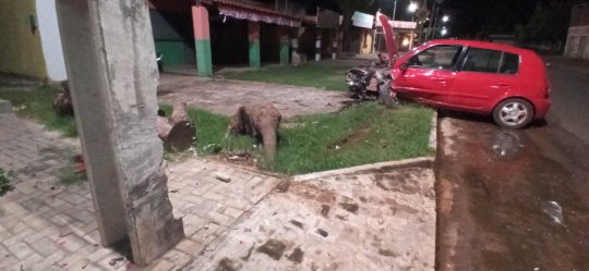 Testemunhas informaram que o veículo seguia no sentido centro/bairro, quando o motorista identificado apenas como Esdras, mecânico, residente no Bairro Deus me Deus, perdeu o controle do carro, vindo a colidir violentamente, deixando o veiculo com a parte da frente totalmente destruído.