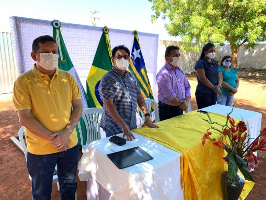 Acompanhado com ele estavam o secretário municipal de Educação Edvaldo Lima, a ex- secretária de Educação Conceição Lima, o vereador Manin Pereira representando o poder Legislativo, a diretora da escola Carmina Macedo e outras autoridades em educação e populares.