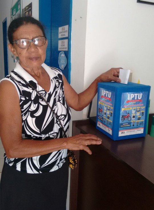 Dona Maria Adelina Soares Ramos - Pagou o IPTU e já depositou cupom da sorte na urna