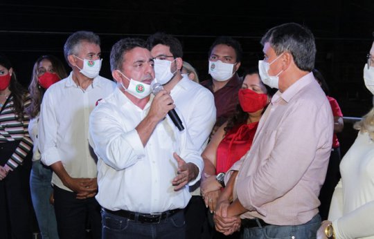 Falou também que as greves não podem voltar, que desde que assumiu nunca mais teve um dia de greve. Destacou trabalhos como a iluminação de led, calçamento. Que são por essas razões que deseja continuar esse projeto com o grupo que faz a diferença, e agradeceu o governador Wellington Dias.