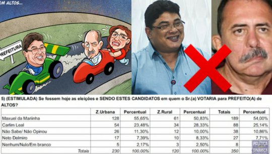 NOTÍCIA RELACIONADA: CREDIBILIDADE/ALTOS: Maxwell lidera com 54%; Carlinhos Leal é o mais rejeitado