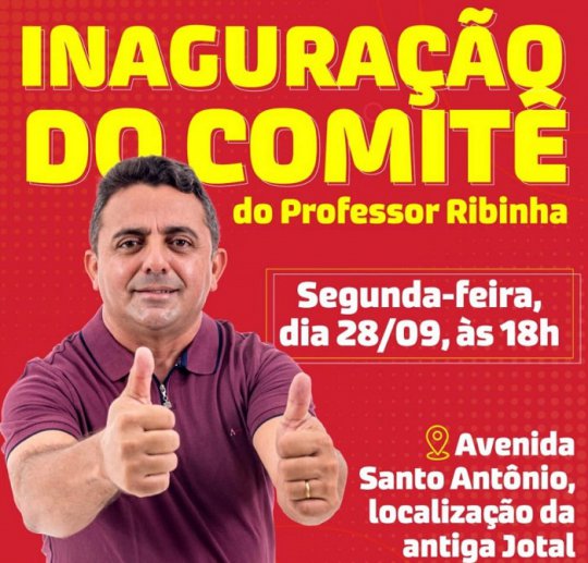 O candidato a reeleição para prefeito de Campo Maior, Professor Ribinha, inaugura nesta segunda-feira (28) Comitê de Campanha na avenida Santo Antônio, próximo à Rodoviária. O evento acontece a partir das 18h e contará com a presença de pré-candidatos, apoiadores e simpatizantes.