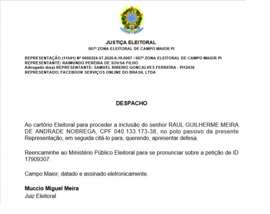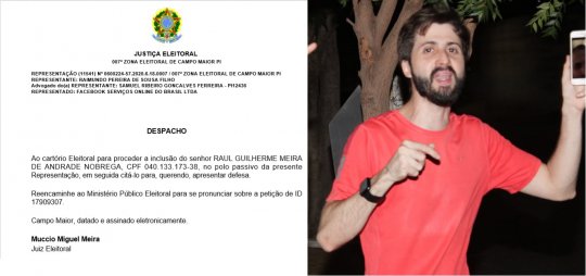 O indivíduo responsável pelas postagens e administrador do perfil foi identificado como Raul Guilherme Meira de Andrade Nobrega. Ele é sobrinho do candidato a Prefeito João Félix, e já foi devidamente intimado pelo Juiz Muccio Miguel Meira para apresentar defesa na Representação. A conta anônima foi desativada por determinação judicial.